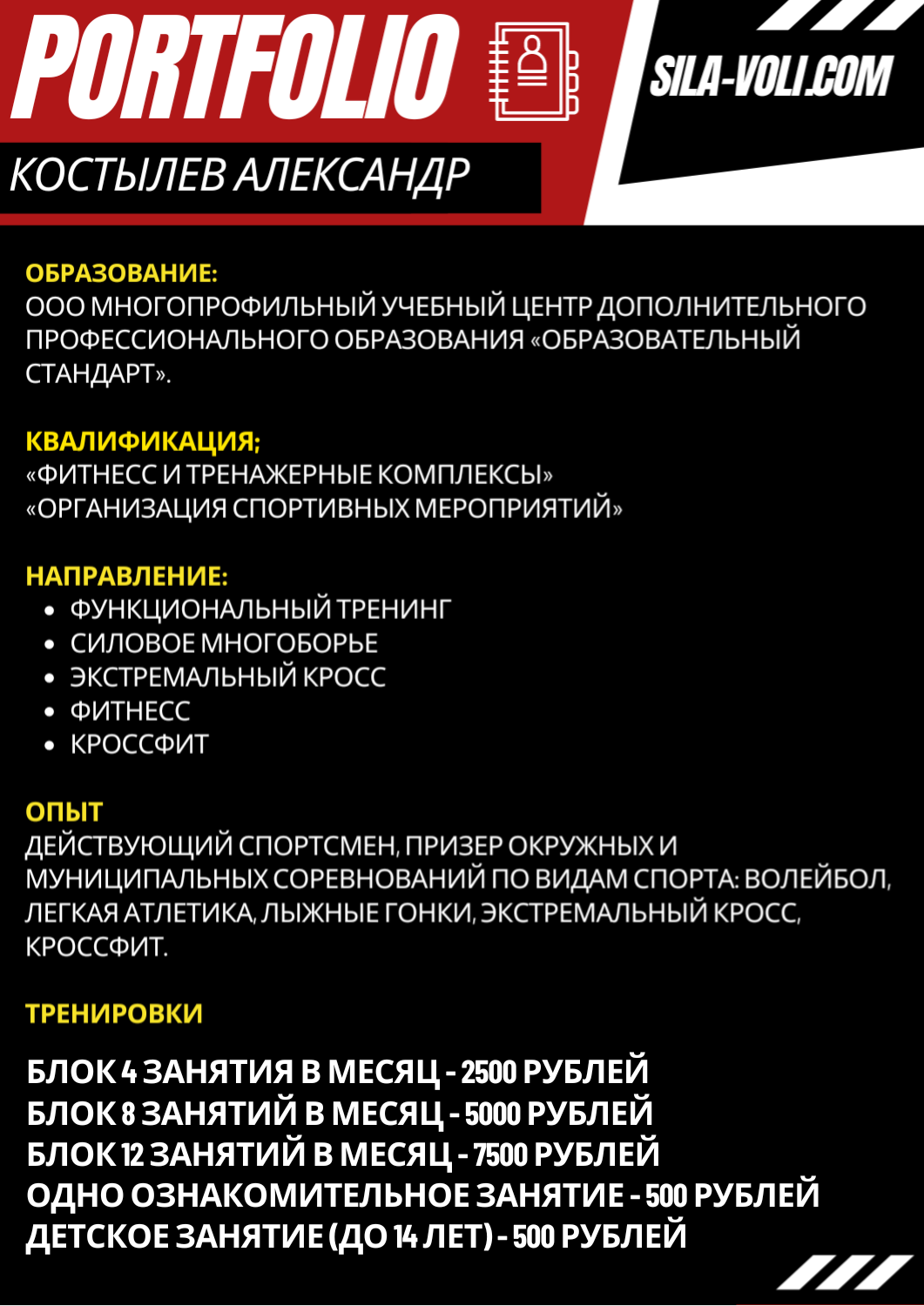 Александр отличный тренер! Грамотно строит тренировки, учитывает индивидуальные особенности каждого. Благодаря занятиям улучшилась выносливость, сила и общее самочувствие. Всегда поддерживает позитивную атмосферу на занятиях, мотивирует достигать новых высот. Рекомендую всем, кто хочет добиться результатов и получать удовольствие от тренировок!