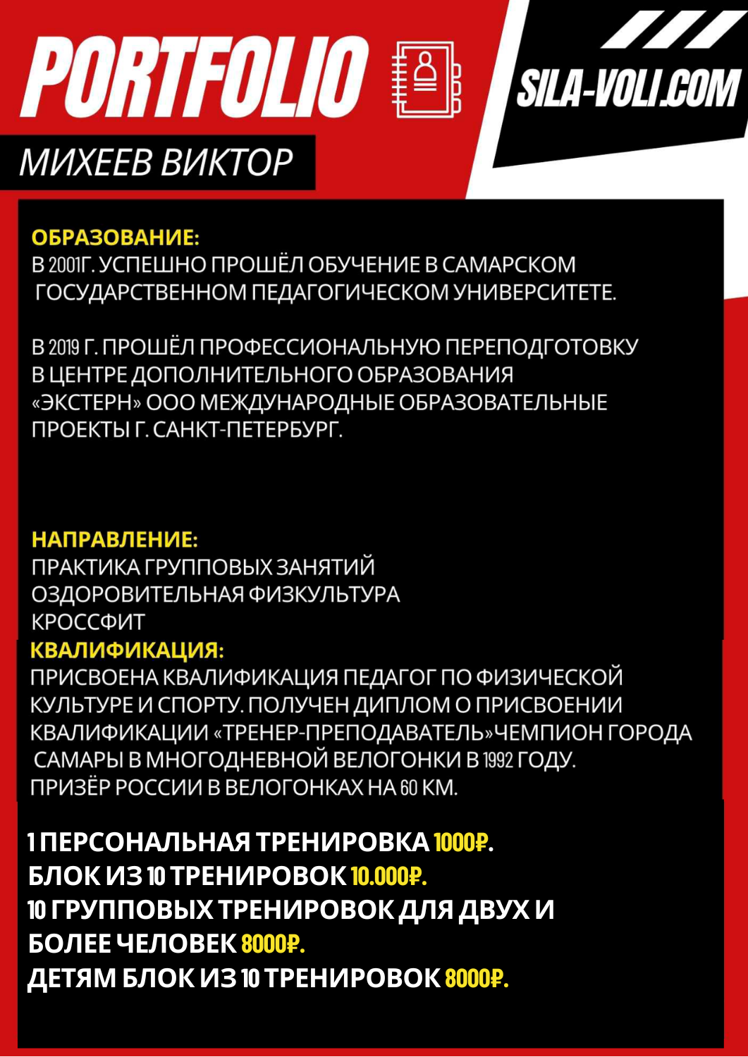 Виктор - профессионал в своем деле и грамотный тренер с соответствующим высшим образованием!